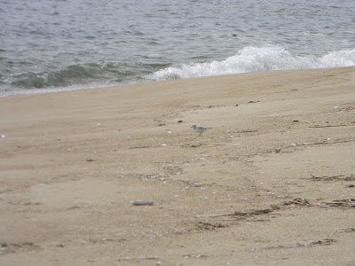 I didn't have to wait long before the invisi-birds appeared. I heard them peeping as I was setting up my beach chair. There were two of them, but they were not acting much like a pair. All I saw them do was eat - separately.  The water line and the wrack line seemed equally appealing to both of them. There were a lot of flies in the wrack, which was also attracting lots of purple martins but for some reason no tree swallows.